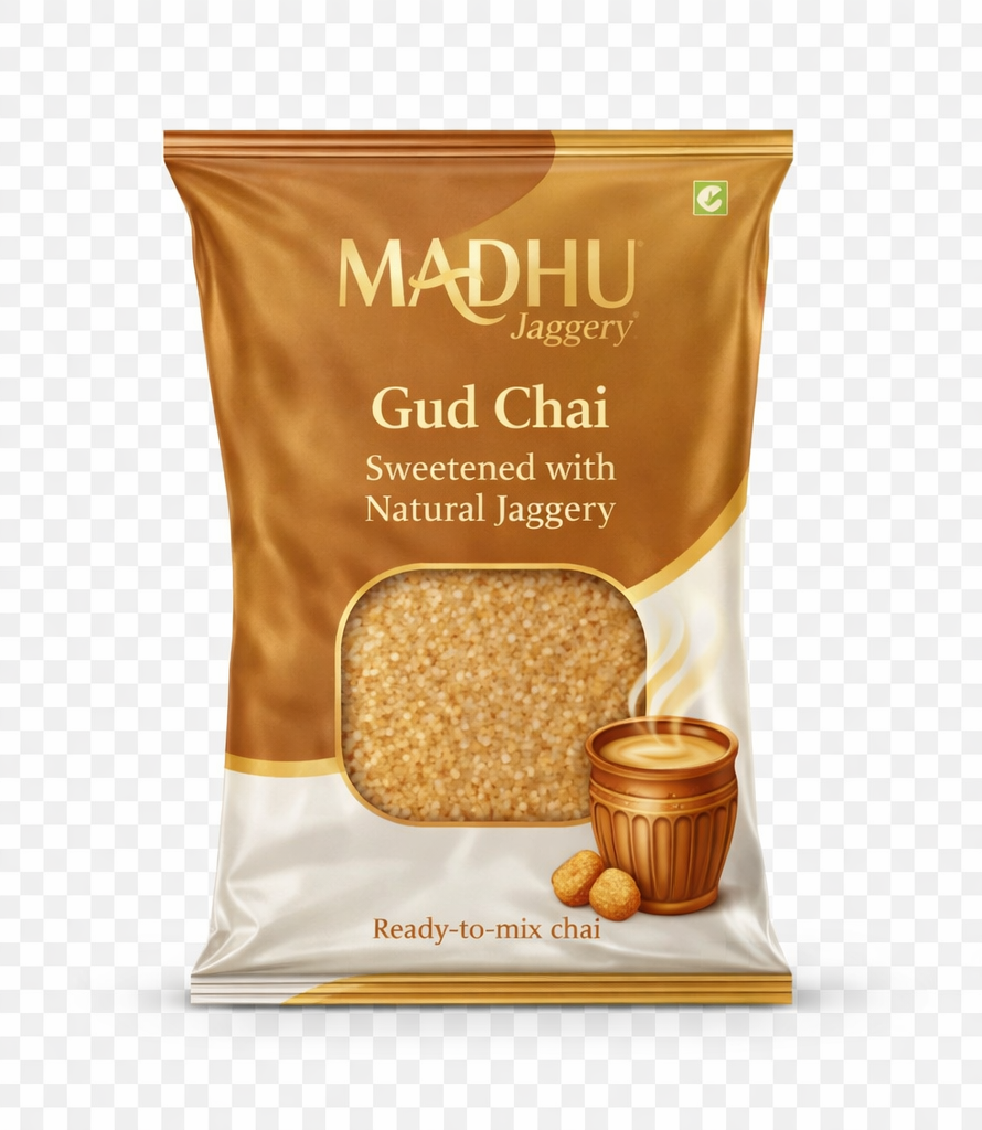 Madhu Gud Chai brings back the authentic taste of traditional Indian tea, made better with the goodness of natural jaggery. Crafted for modern lifestyles, this premix offers a convenient way to enjoy flavorful chai without using refined sugar.